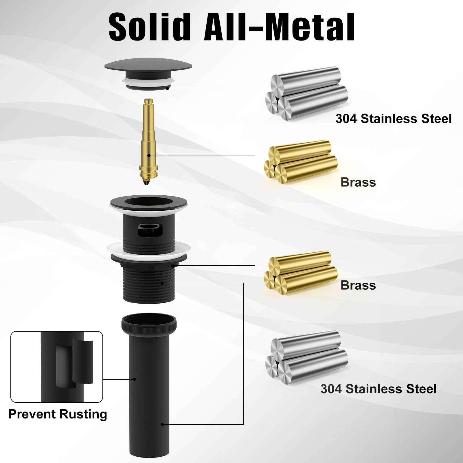 - 【PREMIUM ALL-MENTAL】 ELLAI drain stopper is constructed of anti-explosion and anti-cracking 304 stainless steel and brass, with a smooth surface, protecting against corrosion and rust in a humid environment, integrally-molded and seamless, no water leakage phenomenon. Long-lasting for at least five years.