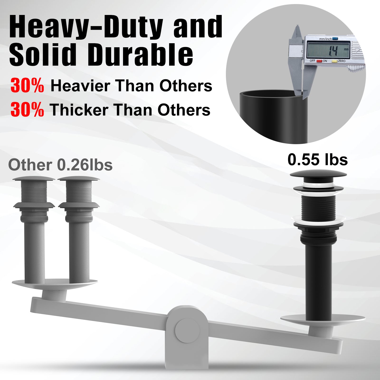 - 【Normal Fitted】Fits most of vessels sinks: The diameter of the pop-up cap is 2.6". Overall length of the sink drain is 7.1". The thickness of the tube is 1.4mm and thicker than most pop up drains. Please check whether your vessel sink is NOT equipped with the OVERFLOW HOLE before using.