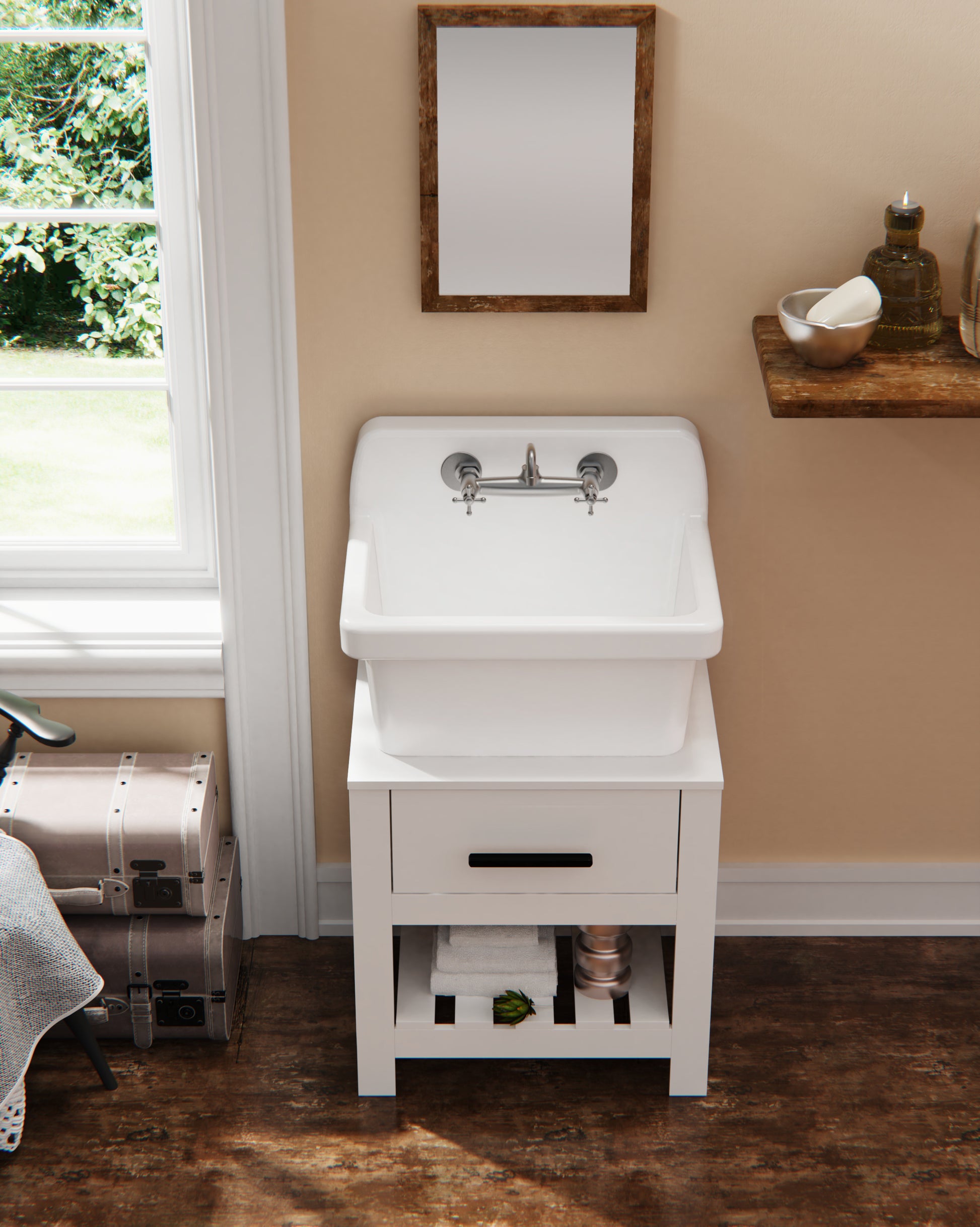 ELLAI Utility Sink Wood Solid Table Laundry Sink Table Freestanding Utility Tub for 24 inch Sink for Workshop, Laundry Room, Garage, Basement,Garden, Pet Wash Station, White 24”x19"x25"